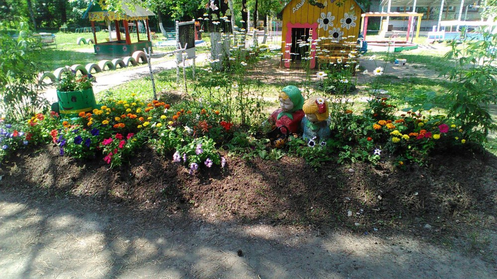 На территории Учреждения оборудованы 5 участков для прогулок, имеется физкультурная площадка, теневые навесы. Территория детского сада ухожена. Коллектив поддерживает территорию в хорошем состоянии, ухаживая за цветниками, поддерживая чистоту и порядок.